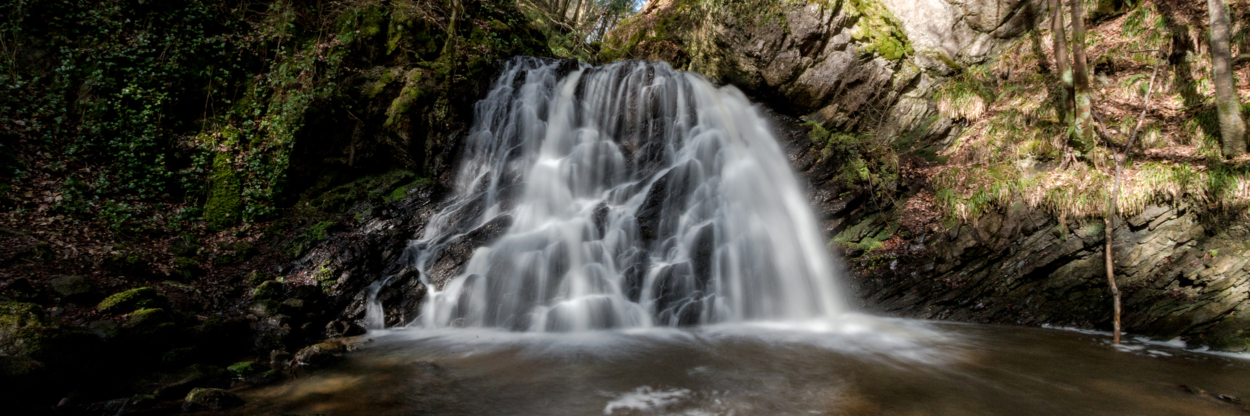 Lower light levels in the woodland provide us with opportunities for setting longer shutter speeds to slow down the water and produce a silky water effect – a classic photography output..